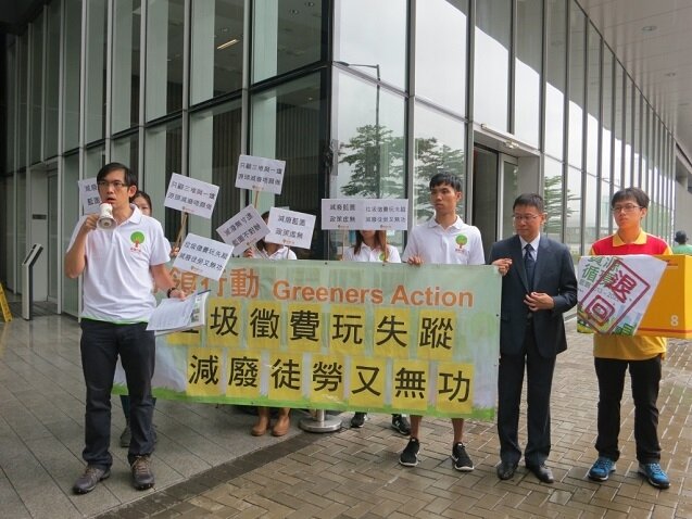 本會總幹事何漢威表示:「環境局的減廢措施一拖再拖,例如廢物徵費由2004年提出,更聲言於2007年向立法會提交法案,之後說延至2016/17年推出,現在更『玩失蹤』。」