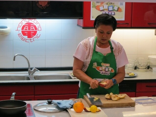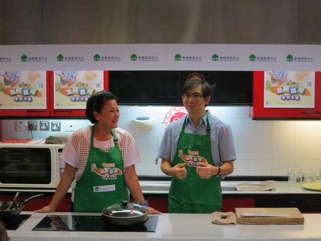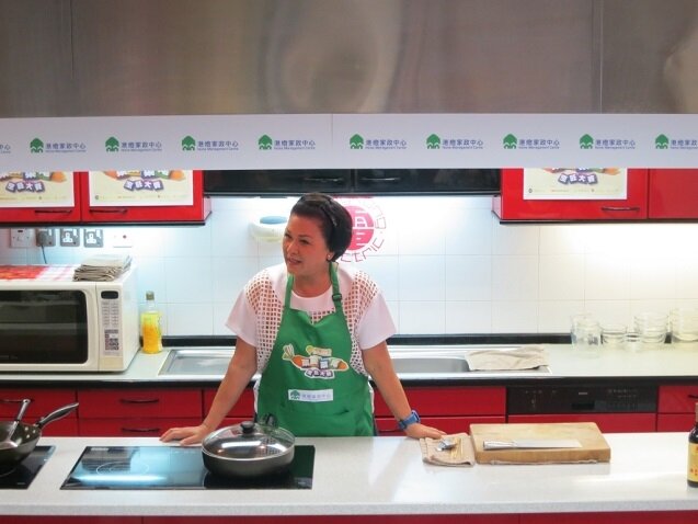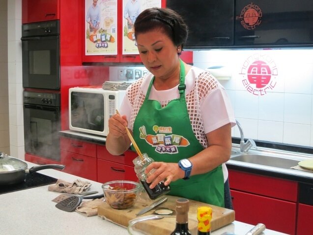 由綠領行動舉辦的「菜頭菜尾烹飪大賽2015」的家庭組已經截止報名,共收到逾百份報名表,反應理想。經評審後,30名入圍隊伍亦已順利誕生,他們將於7月中及8月底舉行的地區賽一較高下,爭奪入圍終極大賽的最後六強。為讓入圍隊伍有最佳準備,得到港燈家政中心的場地支持,活動大使黃淑儀(Gigi姐)今日特別「開班授徒」,透過主持廚藝進修班,向入圍隊伍傳授入廚心得,親身示範烹調「酸甜蘿蔔皮」、「鮮果炆牛腩」兩款菜頭菜尾菜式,兼解答參加者的疑問。