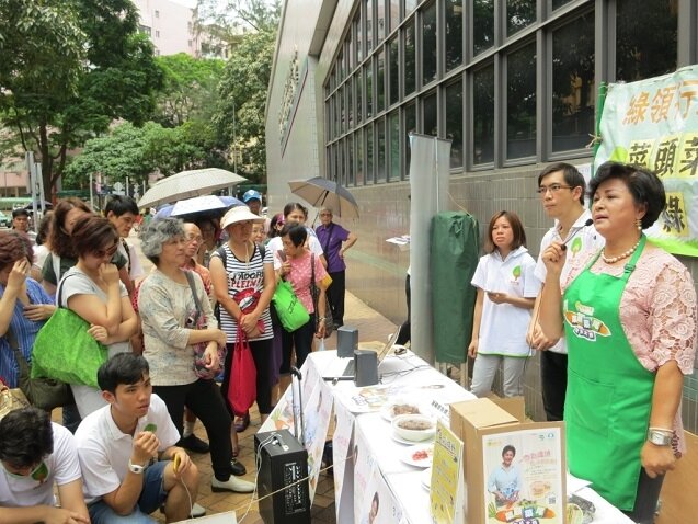 The “Cook for Green Competition 2015” organized by the Greeners-Action is now open for application. Together with star-rated campaign ambassador Miss Wong Shuk Yee who impromptu demonstrated the way of “upgrading food remains” through producing fresh and healthy apple juice in Tai Po market that drew many people’ appraising attention, Greeners-Action chairman Mr. Ho Hon Wai said it is actually not difficult to “upgrade” food remains as long as creativity is applied, and he encouraged people to participate in the meaningful competition.