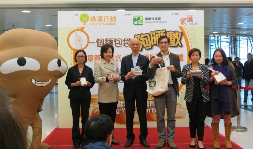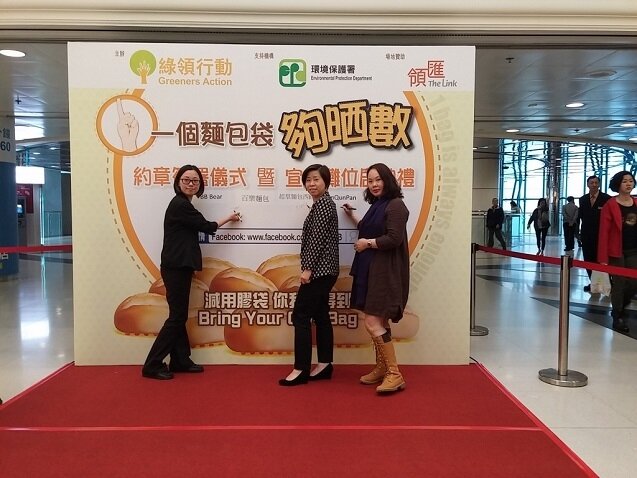 全面推行塑膠購物袋收費(「膠袋收費」)今個月起正式實施,但因法例所限,即使麵包已有獨立包裝,若果包裝並非氣密,市民仍可免費再索取額外膠袋。為鼓勵市民自願減用不必要的麵包膠袋,綠領行動推出《一個麵包袋夠晒數》約章,並已得到全港四大品牌、共15間連鎖式麵包店支持。包括百樂麵包店、超羣麵包西餅、BB BEAR及QunQunPan。