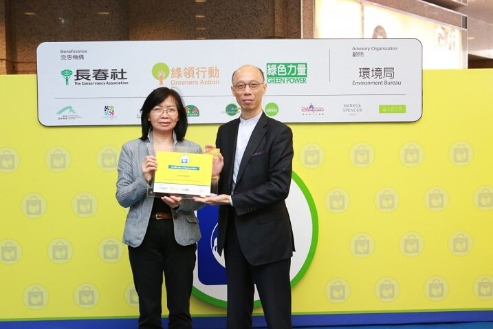 環保團體長春社、綠領行動及綠色力量組成合作平台,接受商戶由2015年4月1 日實施《全面推行塑膠購物袋收費》出售之塑膠購物袋收費作捐款,用於推動減廢項目,以及宣傳自備購物袋。長春社、綠領行動及綠色力量於3月24日在銅鑼灣時代廣場舉行合作平台成立典禮,出席嘉賓包括環境局局長黃錦星太平紳士、長春社總監蘇國賢、綠領行動總幹事何漢威、綠色力量行政總幹事文志森博士,以及參與首階段捐款的各大零售商代表。