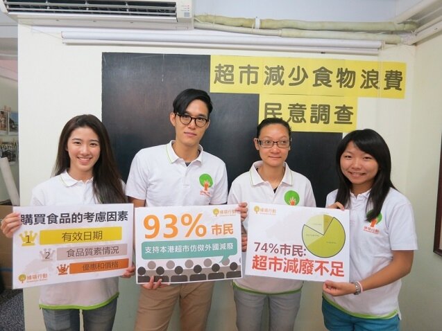 綠領行動於今年6月初曾舉行新聞發佈會,指出本港超市於減少食物浪費方面表現滯後,部分超市分店只以捐贈的形式處理剩食,欠缺全方位減廢的目光。有見及此,綠領行動於本港十八區進行街頭意見調查,收集市民對於超市減廢的意見。調查結果顯示,超過九成(93%)市民支持本港超市仿傚外國,主動實行不同類型減少丟棄食物的措施,例如於超市網頁刊登剩食食譜、在超市的刊物和店內加強減廢宣傳、主動與供應商溝通,以及減少貨架存貨數目等等,減少食物浪費。