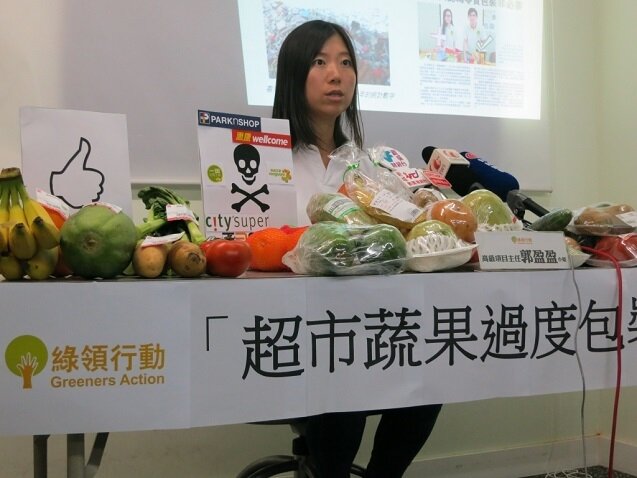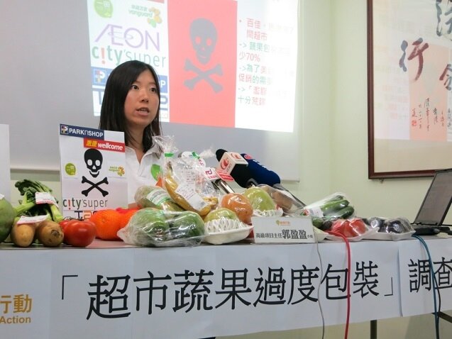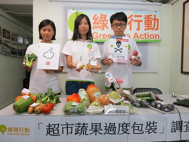 為了解市民的意見及產生包裝廢物的情況,綠領行動7月份於街頭成功訪問了874名市民。調查發現高達86%市民認同「超市蔬果過度包裝」情況嚴重及需要負上責任,亦有85%市民認為蔬果包裝完全沒必要或可以不要。綠領行動今日公佈詳細的「市民對超市蔬果過度包裝」之意見調查結果,一眾成員帶同橫額及標語,並將收集所得之300件包裝廢物做成巨型「包裝廢物波」踢回位於深水埗的百佳超市,及遞上意見書,促使超市對『濫膠』引致的廢物問題負上應有責任。詳細情況請參閱新聞稿。