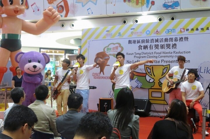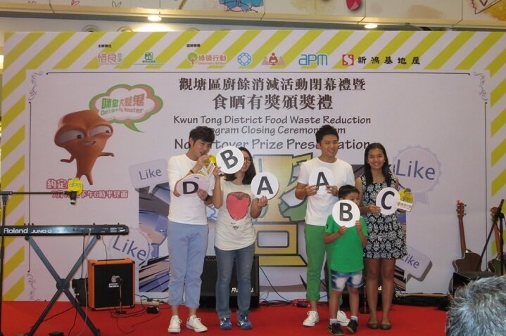 綠領行動聯同環保署、觀塘區議會及新鴻基地產自2011年7月起一同推行首個與區議會合作的廚餘消減活動,兩年內成功推行各個活動包括設置廚餘機、廚餘源頭分類、《優良廚餘管理食肆比賽》、《食晒有獎》等,每日減少廚餘8%,兩年內共回收108噸的廚餘,幫助減輕堆填區的負擔。回顧兩年的經驗,發現商場配合餐廳的宣傳,能有效提高市民的意識,未來會在其他地區繼續相關活動。活動今日於apm進行閉幕典禮,並公佈首輪《食晒有獎》活動成效調查結果。