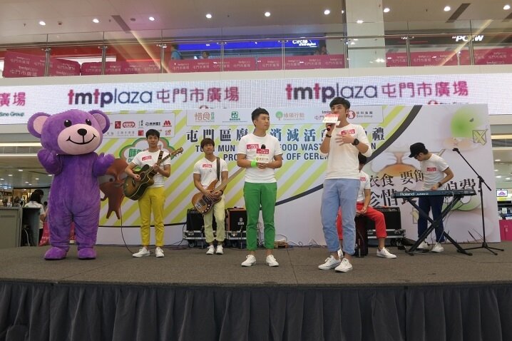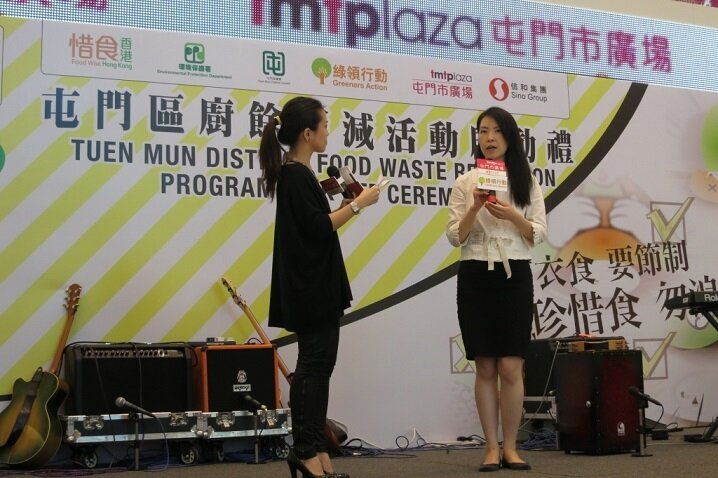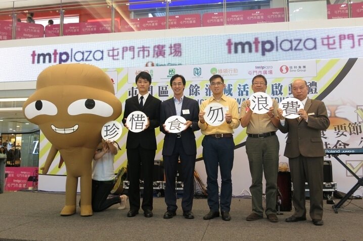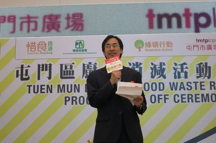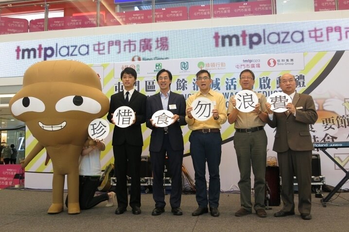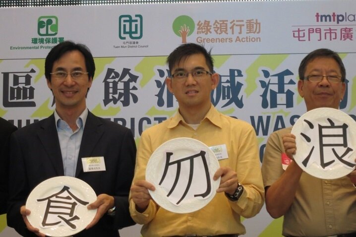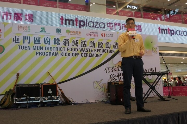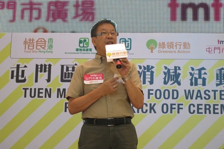 Greener Action held a launch ceremony of the Food Waste Reduction Program in the Tuen Mun Town Plaza(tmtplaza) today (3rd July). The program has been co-organised by the Tuen Mun District Council, the Environmental Protection Department and Greeners Action. A series of activities will be held to facilitate and encourage citizens’ and venders’ awareness of reducing food waste and also develop the community a habit to reduce food waste. There are 18 restaurants in tmtplaza and K-point participating in sorting and recycling food waste at source. They also have food waste recycling bin in the kitchen to collect post- and pre- food waste. Food waste from part of the restuarants, such as Cafe de Coral, Crystal Jade, The Spaghetti House, DONDONYA, Beppu Ramen, Yummy Handmade Sanuki Udon Restaurant, Shanghai Min, Aeon, Spaghetti 360, Morihachi Kitchen Tamago and Mos Burger, will be delivered to the Pilot Composting Plant (KBPCP) at the Kowloon Bay Waste Recycling Centre (KBWRC) for intergrated treatment and synthesizing into fertilizer. Other food waste will be processed by the composting plant in the tmtplaza. It is estimated that 100 tons food waste can be prevented from the landfills within half a year.
