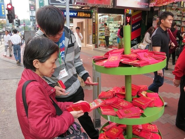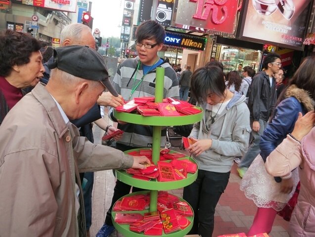 > 綠領行動街頭派發5萬「新生利是封」,籲過環保新年