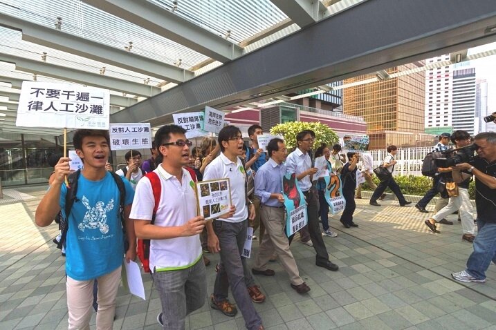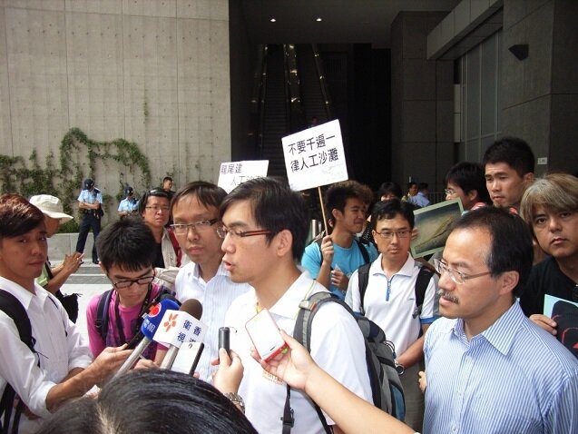 「保護龍尾泥灘,不要人工沙灘」!於10月12日的正午時份,綠領行動聯同各環保團體一起到政府總部請願,表達我們對龍尾人工沙灘工程的強烈反對,因為工程一旦展開,該處受影響的生物相信會超過二百多種,當中包括飛白楓海星、尾斑鈍鰕虎魚及平額石扇蟹;而另一方面,該處水質的污染程度,已近乎不適宜市民游泳,我們實在難以理解為何政府仍然堅持浪費二億元公帑去建造一個沒有公用價值的「廢灘」。現本會敦促政府正視民意,剎停龍尾人工沙灘工程。