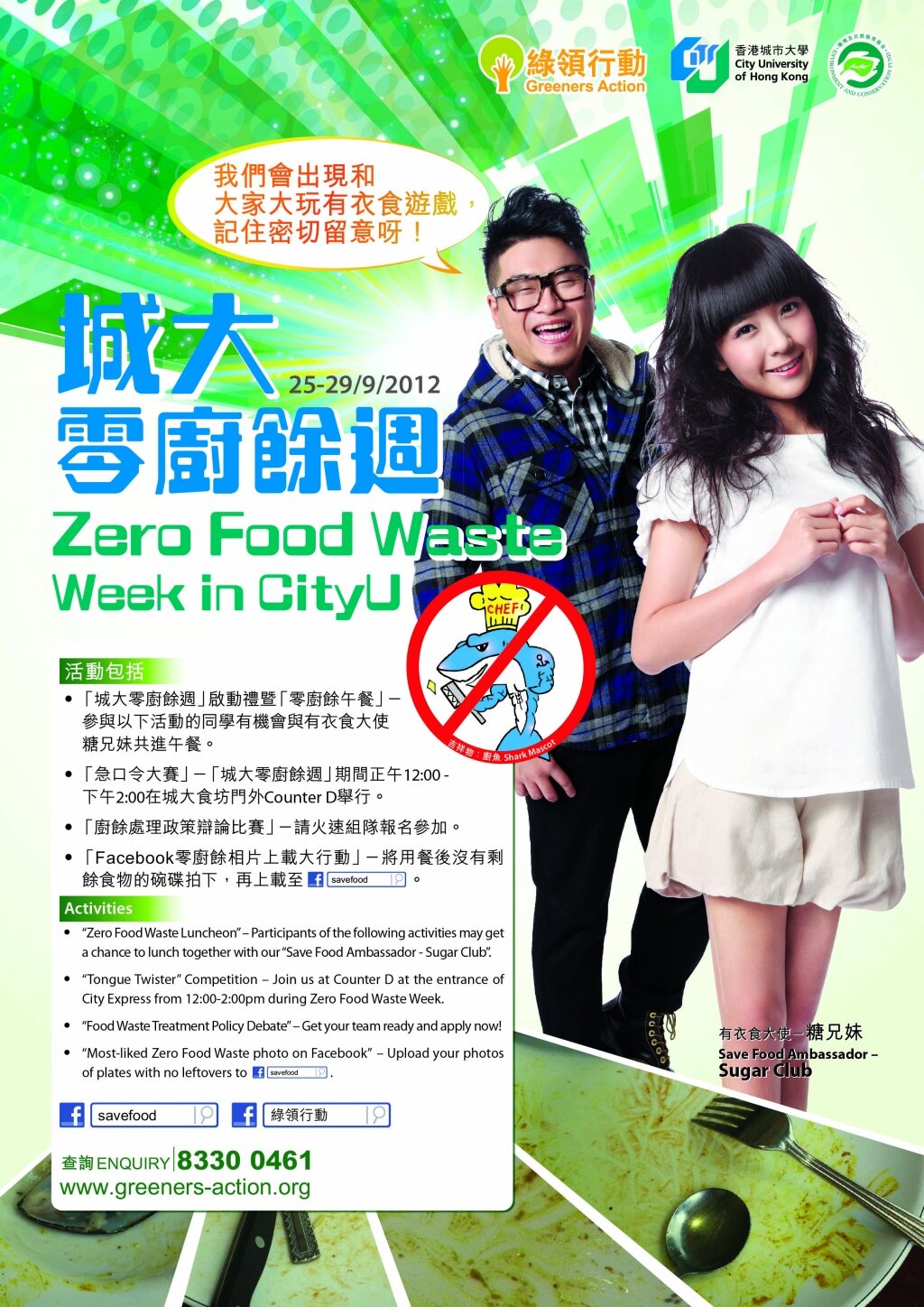 Found by the Environment and Conservative Fund, Greeners Action, collaborated with the City University of Hong Kong, organised the “Zero Food Waste in CityU” campaign in the school year 2012-2013.