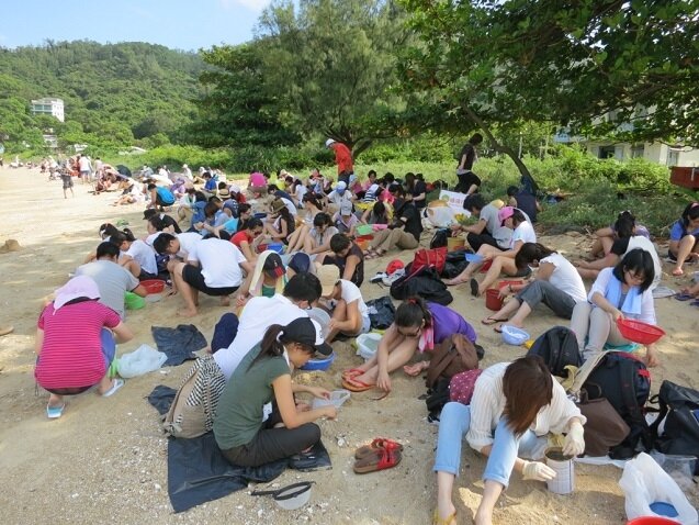 The plastic pallet is now brought to the beaches again due to the typhoon last week. Although it seems that all our effort is wasted, the typhoon also flushed the pallet from the rock crack to the beach so that it is easier to be cleaned now. Last Sunday(19/8), according to some of our passionate volunteers, Greeners Action changed our cleaning-up destination from the Big Wave Bay to Chi Ma Wan, which is polluted more seriously. More than a hundred people took the ferry to the pier of Chi Ma Wan and walked to the Shap Long beach. There were noticeable plastic pallet all over the sand, everyone began to clean up quickly after settled down. The number of pallet collected was higher than the previous campaign.
