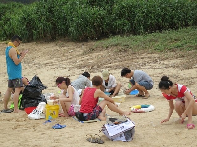 由於大浪灣沒有渡輪接駁,一般市民較難前往,沙灘上當日只有水上活動的十多位健兒。沙上明顯看到膠珠遍佈,參加者放好行裝後,便開始分組積極清理膠粒,大家用手逐粒逐粒地把膠粒收集,確是粒粒皆辛苦,除了膠粒外,大家同時合力清理灘上的垃圾,可惜垃圾筒旁佈滿一袋袋未被清走之垃圾。中央收集的膠粒會作後期清理並送至盛夏劇團作教育用途,讓觀眾得知膠粒原料的嚴重性。