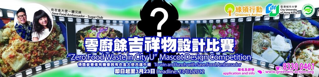 綠領行動聯同香港城市大學,獲得環境及自然保育基金支持,於2012-2013學年舉辦「城大零廚餘校園」,吉祥物設計比賽為整個計劃設計一個吉祥物作代表,除了可為活動塑造一個ICON,更可加強活動的凝聚力,於宣傳活動中,吸引學生的注意力,加深對該活動和設施的瞭解。
