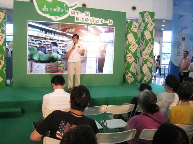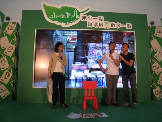 The Greeners Action accepted invitation from the Environment Bureau to attend a campaign related to public consultation tour of extending scope of plastic bag levy scheme held in the Chak Shopping Centre in Tin Shui Wai. We prepared a mumber of scenarios to deepen people’ understanding on plastic bag levy scheme, our chairman Mr. Ho Hoi Wai, together with actress Nancy Sit, shared tips on how to avoid abusing non-woven bag. The response was good.