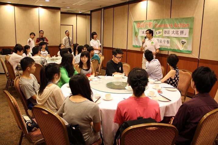 本港每日棄置到堆填區的廚餘廢物約3,200公噸,佔了都市固體廢物三分一,各大專院校的飯堂每日更產生45噸廚餘之多。綠領行動舉辦大專「有衣食大使」培訓計劃,透過一系列活動,讓學生對食物浪費及廚餘處理有更深的認識及體會。為延續大學「有衣食」文化,該計劃中的延伸活動「減廚餘至Like 妙法大比拼」,透過綠領行動「日日都要有衣食 唔好變成地球公敵」facebook網頁(facebook.com/savefood),邀請年青人提出獨有的大學減廚餘心得,比賽期間由4月20日至6月26日共收得近百個減廚餘妙法,建議別出心裁,體驗年青人創意無限。是次比賽的奬品更非常特別,得奬者可與藝人嘉賓於香港科技大學同桌共進環保午餐。