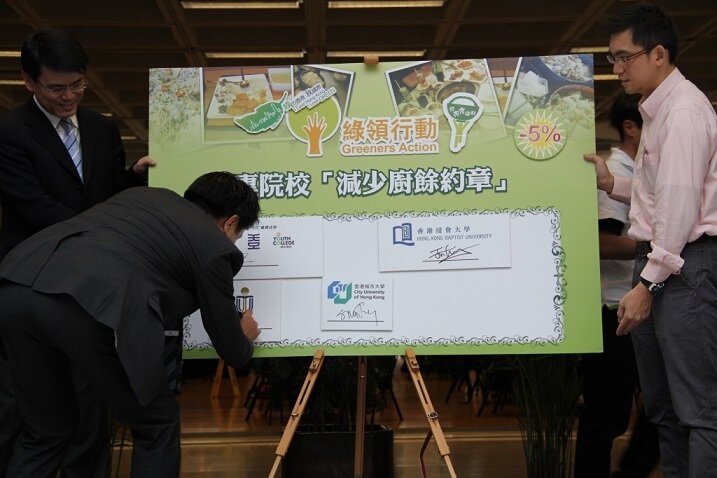 綠領行動為進一步加強及鼓勵各院校持續地推動「有衣食」運動,邀請各大專院校簽署「減少廚餘約章」,於未來一年以減少5%之廚餘為目標。為隆重其事,更於2011年3月25日假香港城市大學舉行大專院校「減少廚餘約章」簽署典禮,該會亦邀請到環境局局長邱騰華先生及香港城市大學校董會主席梁振英先生蒞臨出席,參與院校共11間的代表即場簽署約章,一同向公眾展示關注食物浪費問題及致力減少廚餘的決心。