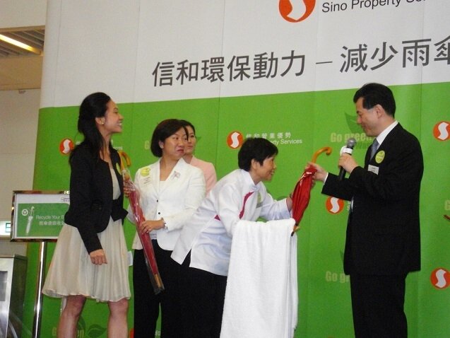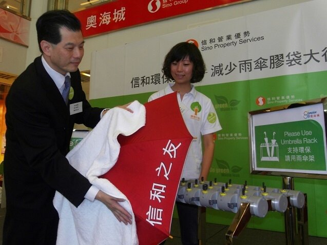 信和集團旗下的旗艦商場包括奧海城、屯門市廣場、中港城、尖沙咀中心及帝國中心以及信和管業優勢總部宏天廣場已全面推行「減少雨傘膠袋計劃」,於商場出入口加裝雨傘架及提供少量環保物料製成的雨傘膠袋外,更特派專人為顧客抹乾雨傘,務求為顧客提供既貼心又環保的服務。全線商場將於月內全面配合,陸續推行。希望能減少雨傘膠袋使用量約六成或以上;計劃更將於年內推廣至集團旗下的商業及住宅,帶動業戶一同於生活小節中共倡環保。