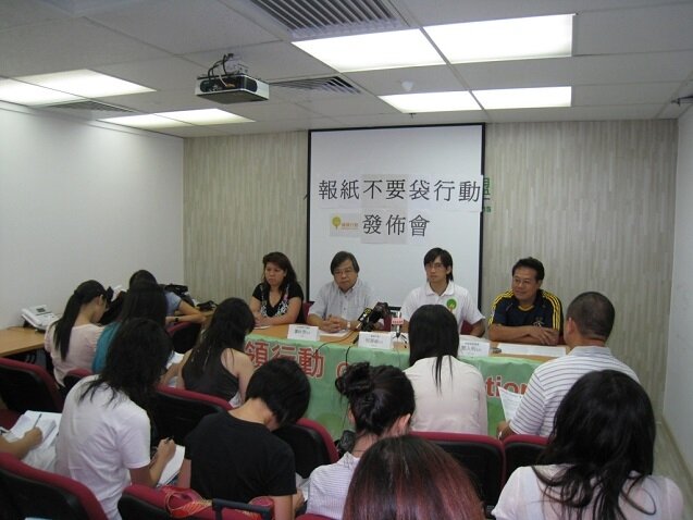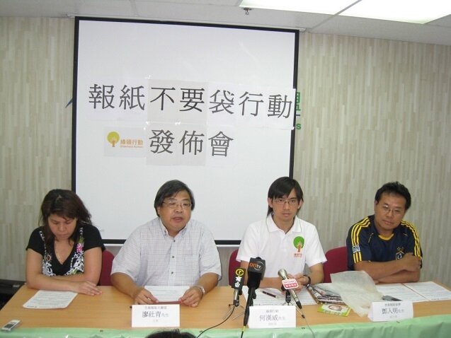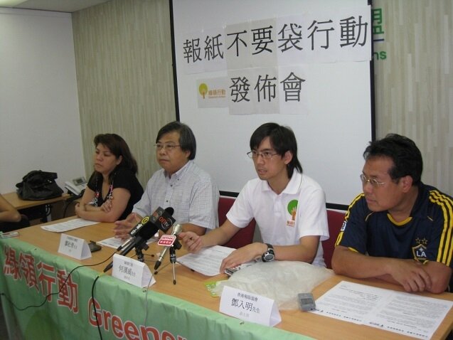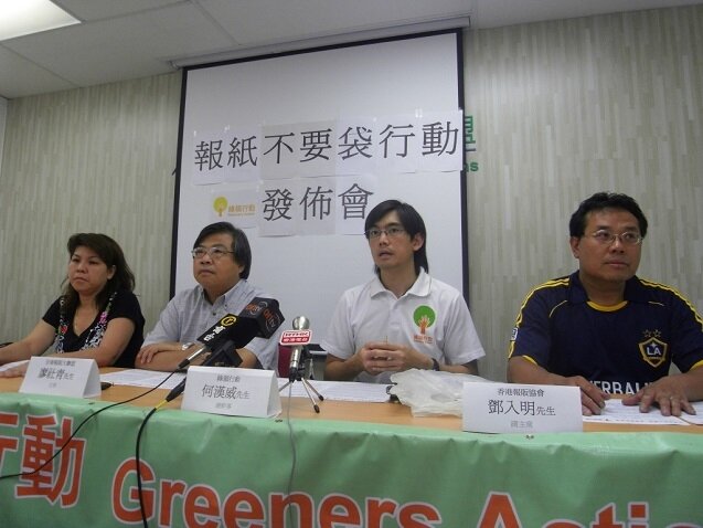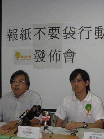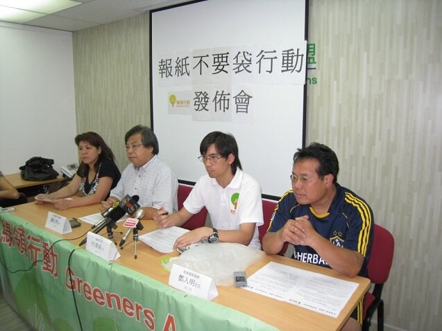 綠領行動於1999年和2008年的調查顯示,2008年有91%市民表示購買報紙有膠袋提供,比較1999年的70%增加了21%,可見報販大量使用膠袋問題依然嚴峻。可是,首階段膠袋徵費並沒有涵蓋報紙膠袋。因此,為改善市民購買報紙習慣,該會與兩個報販聯會發起「報紙不要袋」活動,希望在便利店沒有派發免費膠袋的時候,號召全港報販停止把報紙預先入袋。