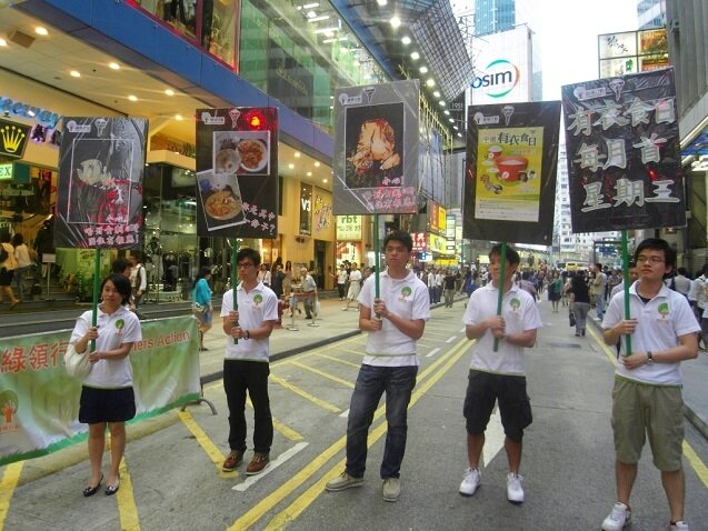 綠領行動於今日在銅鑼灣行人專用區,藉著市民下班及外出晩膳之際,向他們作街頭呼籲,提醒及呼籲市民支持翌日的全港「有衣食日」,於當日按份量叫餐,主動要求少飯。綠領行動將在街頭擺設攤位吸引市民注意。市民食剩的「豬」、「魚」及廚餘等走出來抗議,透過輕鬆的手法,教育市民減少食物浪費及珍惜食物的重要。綠領行動成員更會向市民派發「減少食物浪費的小貼士」,提供全港「有衣食日」的資料及參與食肆名單。綠領行動希望藉著是次街頭活動,鼓勵市民嚮應翌日的「有衣食日」。