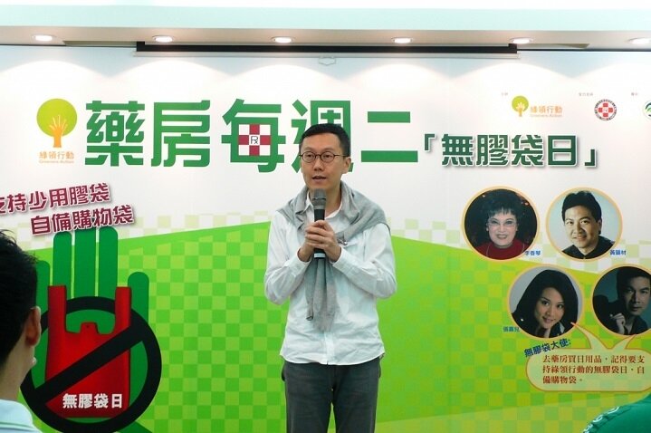 To allow more people to know about the details of and so to support the “No plastic bag every Tuesday” in pharmacies, the Greeners Action held an opening ceremony, for which assistant director of EPD Mr. LEE Koon yan and the chairman of the Hong Kong General Chamber of Pharmacy Mr. Hui siu man were invited. They promoted to the public the importance of “Plastic bag-free” ahead of the scheme. Green ambassador Ms. Lee Heung kam, Mr. Wong Wan Choi and Ms. Kayi Cheung gave their shows and played games with people to spread out green message. After the opening ceremony, together we went to pharmacies nearby to appeal people to support the “No plastic bag every Tuesday”.