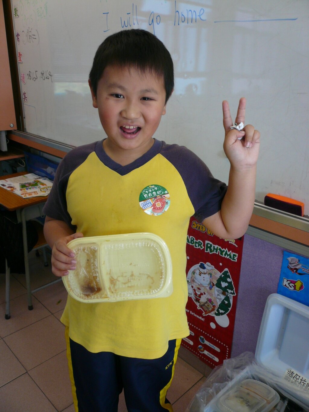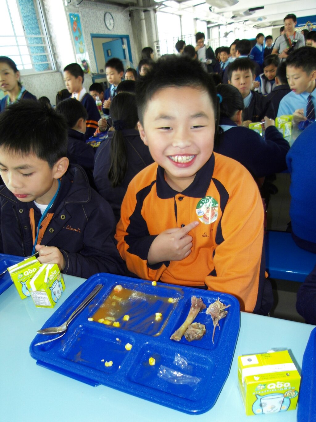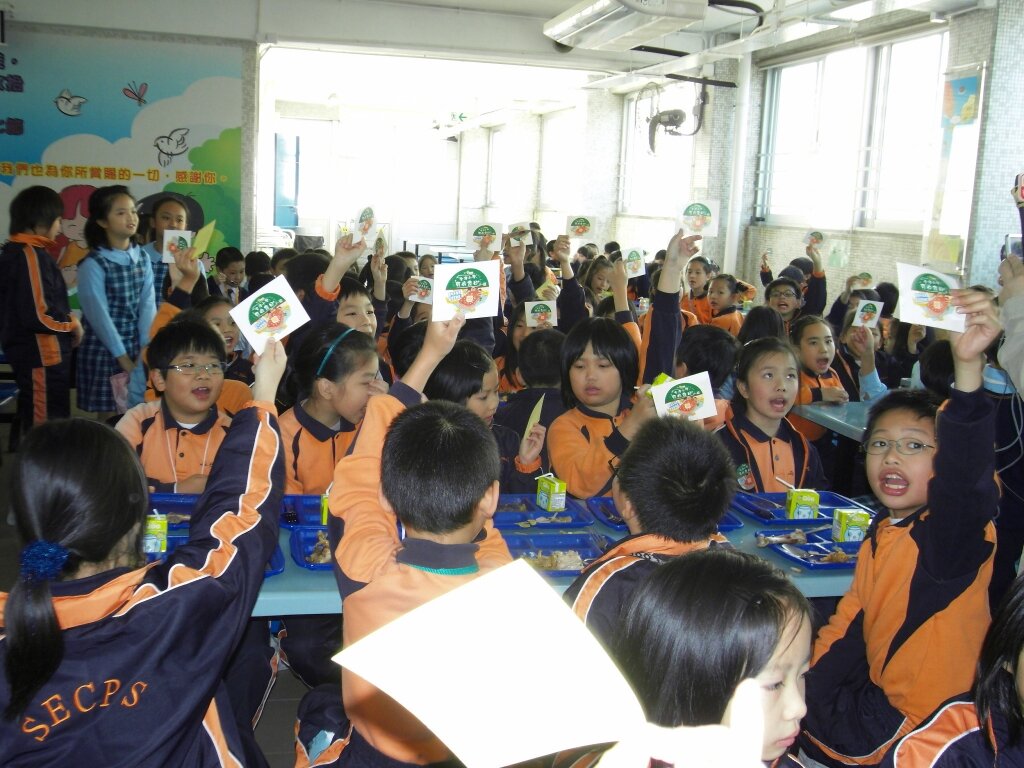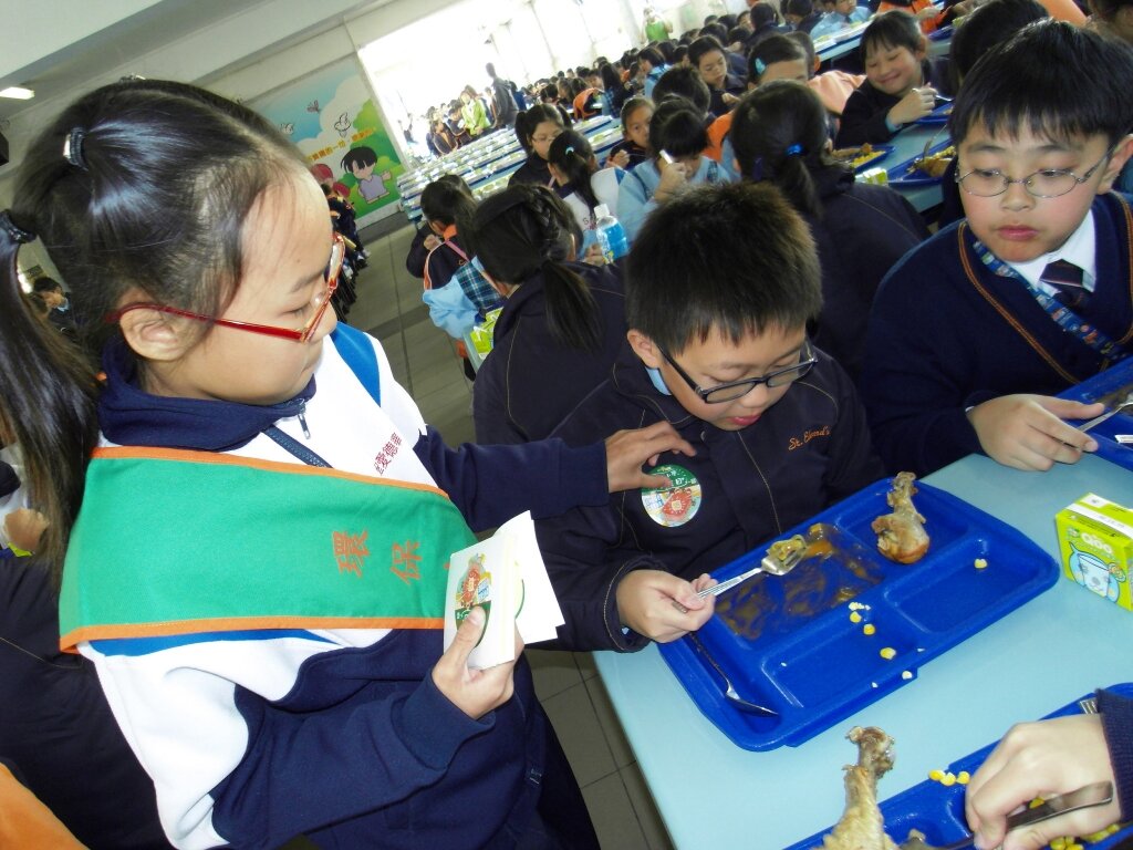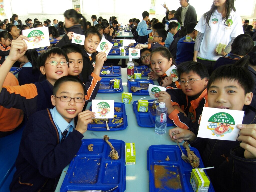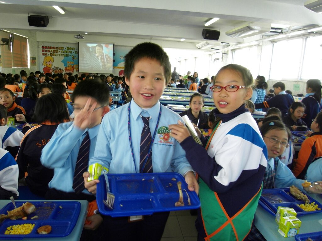 1. On that day, school play a video provided by the Greeners Action about food wastage to the student before lunch, letting them to understand problem of food waste in Hong Kong, and so to put reducing food waste into practice during lunch.