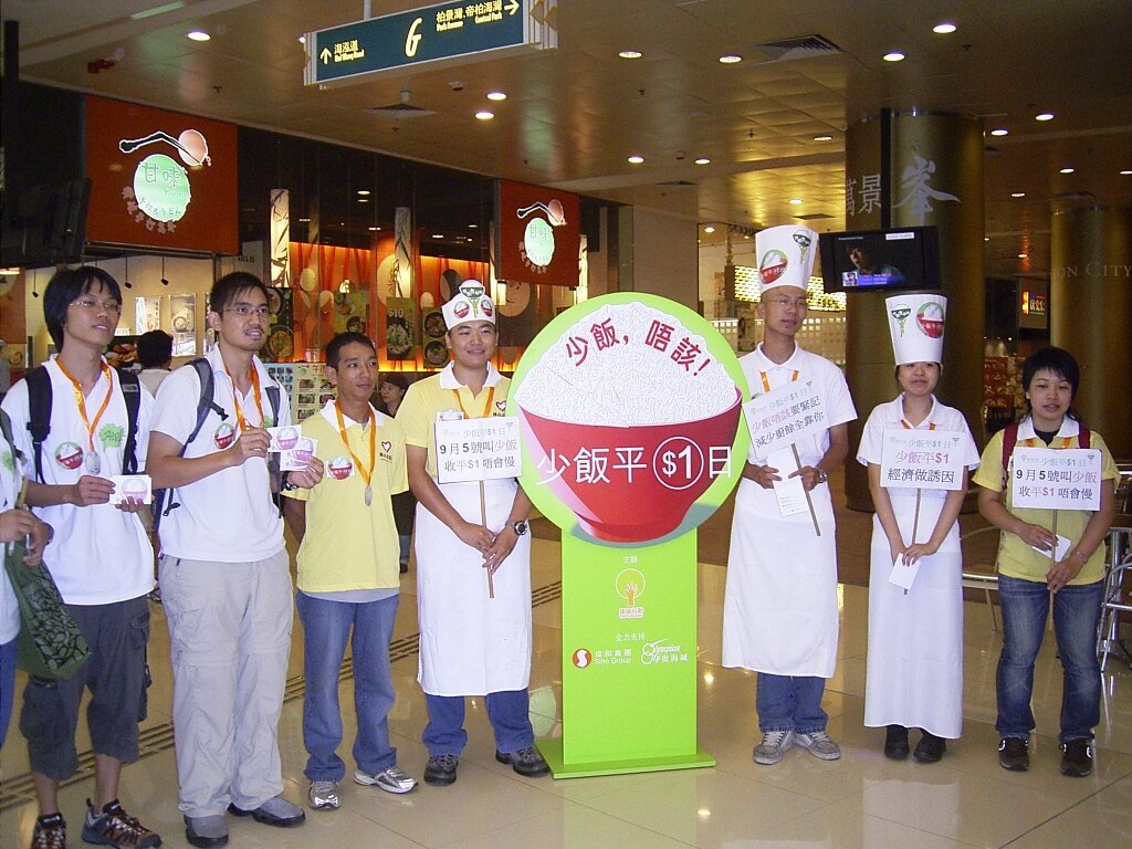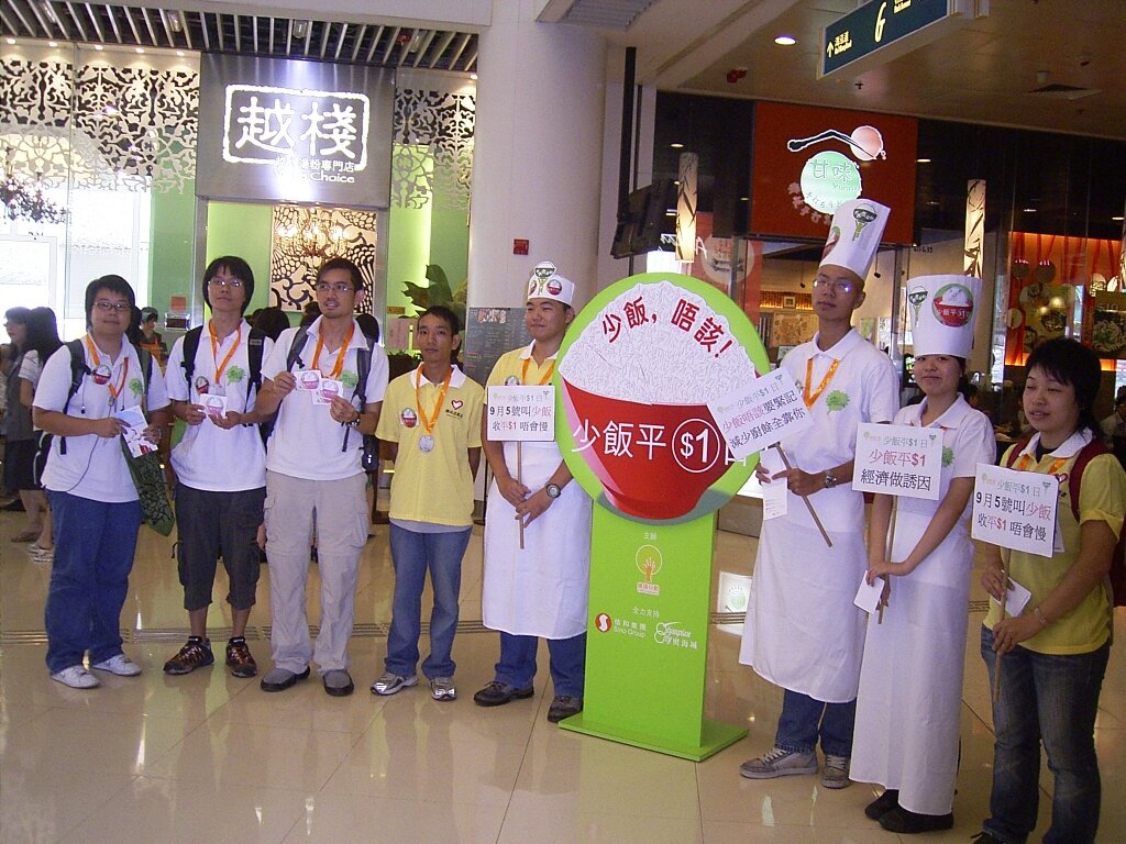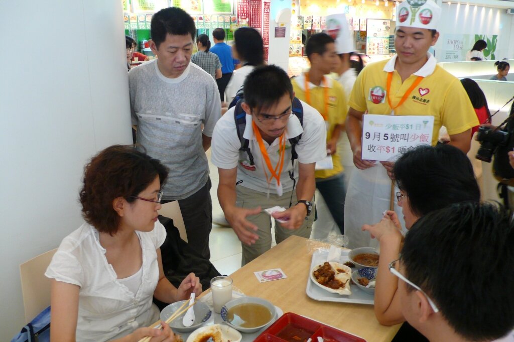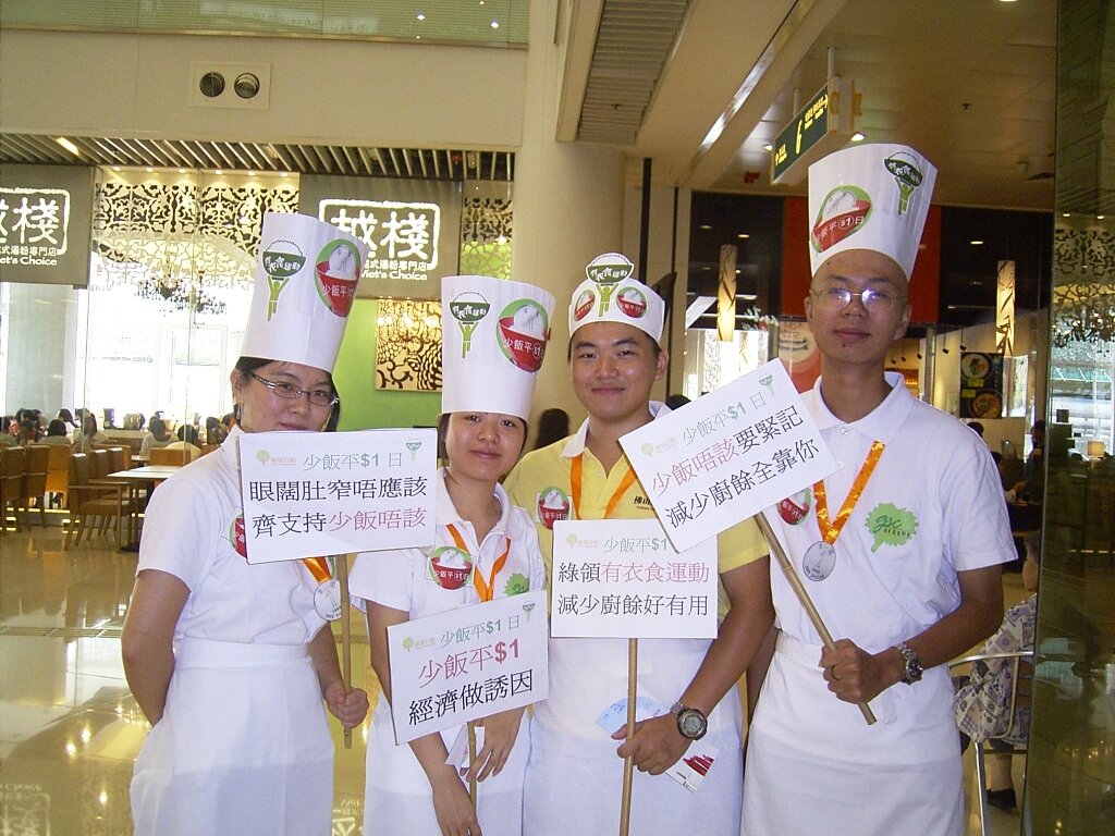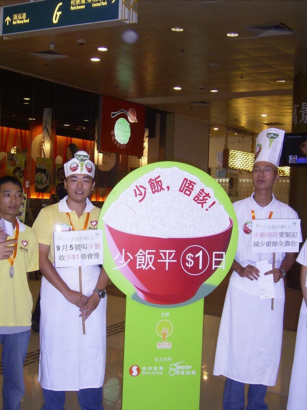 綠領行動(原名:綠色學生聯會)舉辦全港首個「少飯平$1日」,旨在推廣「有衣食」的美德,減少現時非常嚴重的廚餘問題。綠領行動義工與佛山志願者近二十名義工帶著廚師帽,穿上圍裙,繫上$1廚神彩帶,以一身「廚神」的打扮,於午膳時段到奧海城商場向食客宣傳9月5日舉行的「少飯平$1日」,得到商場內的11間食肆熱烈響應,顧客由9月起,每月的第一個星期三惠顧參與食肆,只要在點菜時講一句「少飯,唔該!」,該款食物的白飯份量便會減少三份之一,而顧客亦會獲得扣減$1的優惠。 部份參與食肆則提供「食哂獎$1」計畫,顧客於當日惠顧上述食肆,食清所點的食物達95 %或以上,結賬時便可按人頭計算,每人扣減$1以作獎勵。