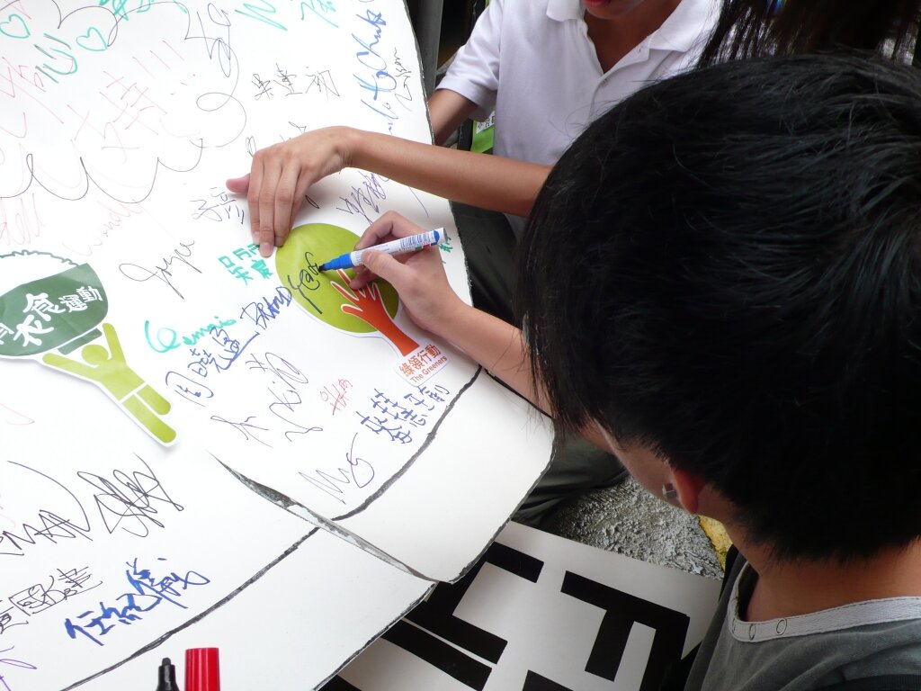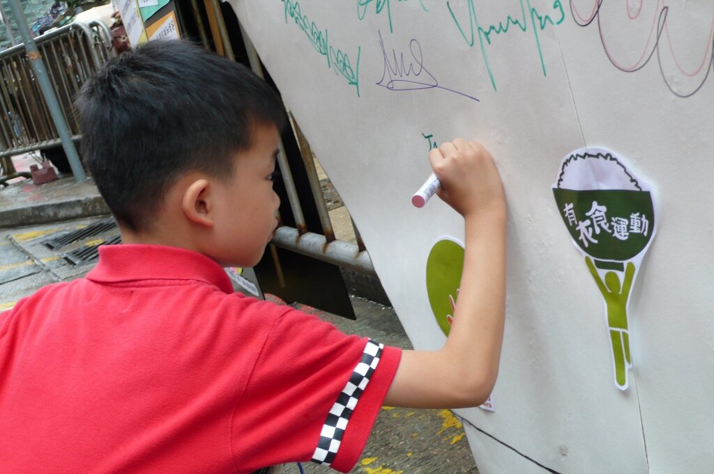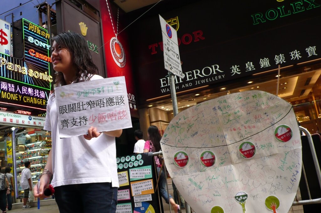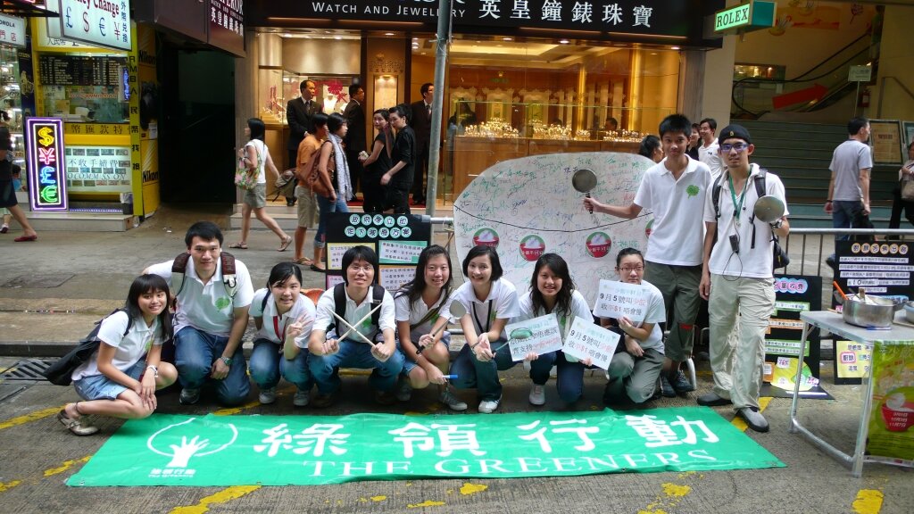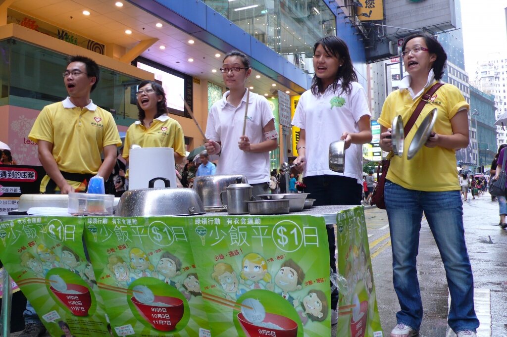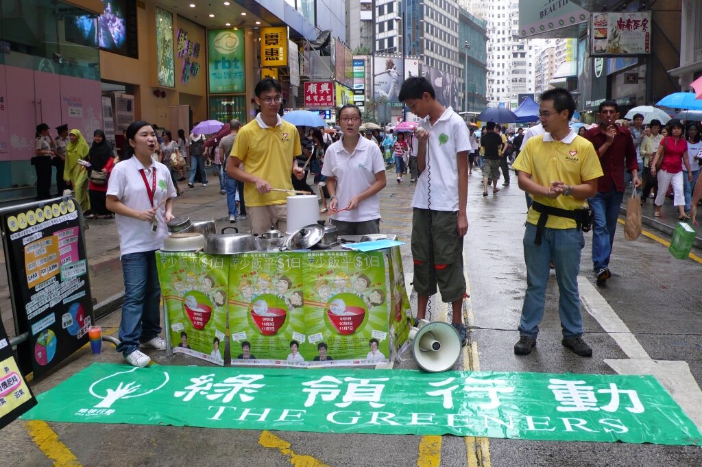 香港一直以貴為「美食天堂」而引以自豪,但光芒背後卻每日產生多達3,200公噸廚餘,佔都市固體廢物34%。綠領行動(原名:綠色學生聯會)於銅鑼灣行人專用區作街頭呼籲及展覽,以敲擊廚房用具提醒市民,無論在家中準備飯菜時要注意份量,外出進餐時亦切忌「眼闊肚窄」,必要時叫聲「少飯,唔該」避免造成浪費。而承諾做到「日日有衣食」的市民亦在一張飯碗形狀的紙上簽名,以示支持。