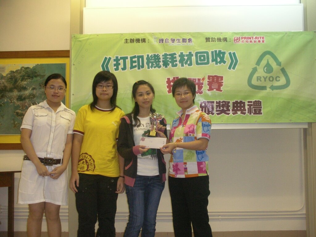 亞軍:香港中國婦女會馮堯敬紀念中學,共回收72個碳粉匣和墨盒