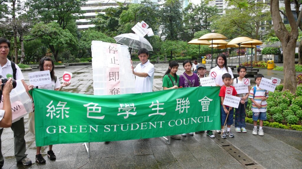 綠色學生聯會代表及十多名小學生,今日遊行至教育局請願,遞上兩個特大即棄飯盒和公開請願信予教育局局長孫明揚先生作為新任局長之見面禮。是次行動是繼06年「送“李”大飯盒」請願行動後第二年舉行同類行動,目的是遣責教育局(前教育統籌局)五年來都不積極改善小學午膳問題。