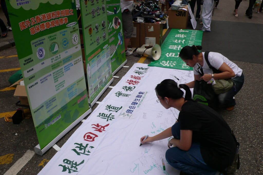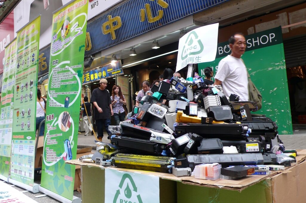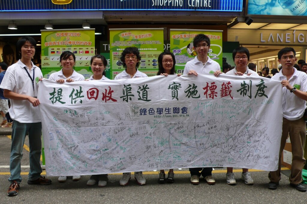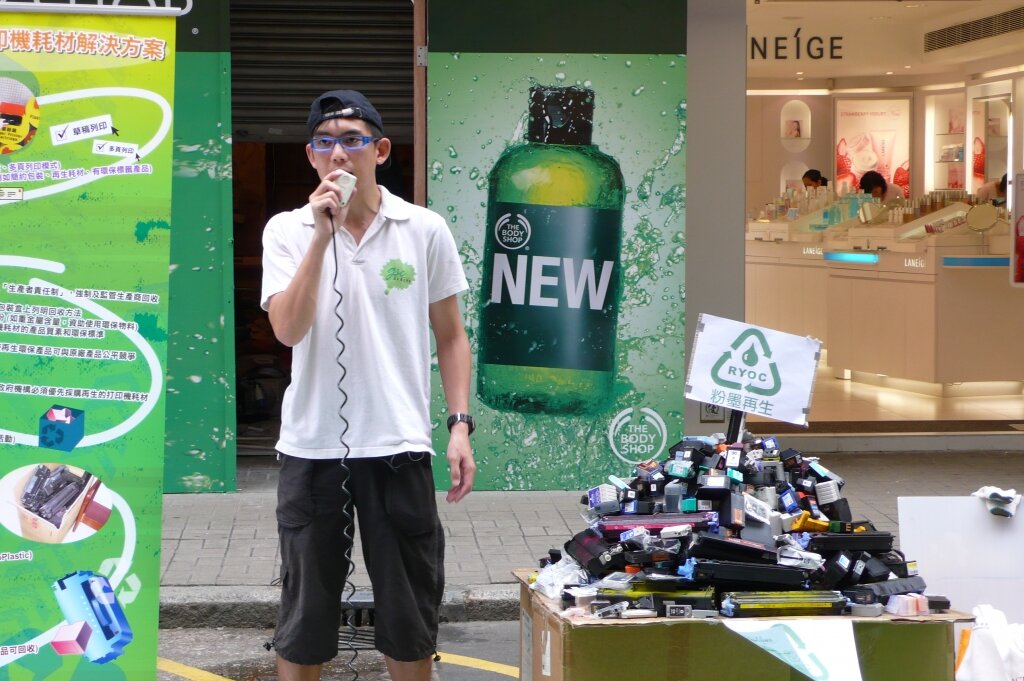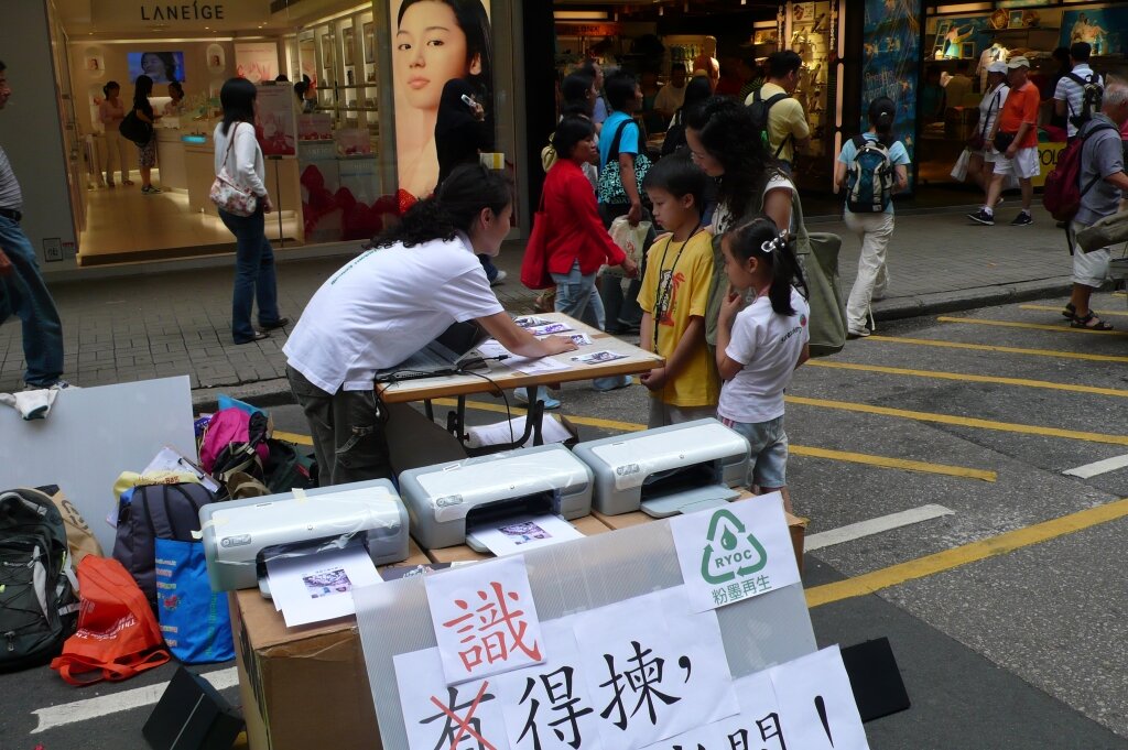 本會於今天於旺角行人專用區舉行公眾教育活動,以展覽、教育單張及遊戲推動巿民參與回收運動及教育市民應如何選擇較環保的打印機耗材。綠學聯一眾義工更會堆砌於上月回收活動所收集的打印機耗材,以刺激市民反思濫棄的嚴重性。本會更會向巿民收集簽名要求政府負責任,設立適當機制推動巿民回收及讓巿民購買打印機耗材時有更環保的選擇。