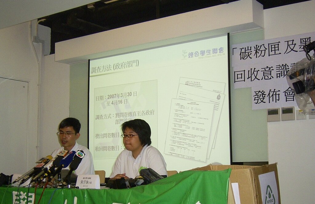 The Green student union conducted questionnaire survey to various government departments from March to May this year, the result showed that it is absolutely practicable to recycle toners and ink cartridges in Hong Kong. However, on the other hand, a similar survey in computer centers and business areas showed there is over 80% of citizen not knowing to identify green toners and ink cartridges. At the same time, the lack of promotion and recycling channel indirectly deters people caring about the environment to participate in related recycling activities.