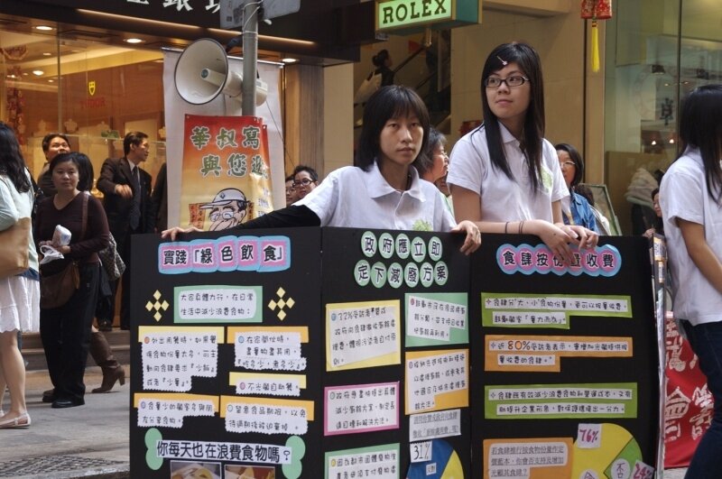 近年來香港浪費食物嚴重,單是2005年就產生了115萬公噸廚餘。 綠色學生聯會舉辦一名為「有衣食運動之年年有廚餘」的街頭活動,以大型「米缸」和「盆菜」向市民展示「年年有餘」之下所造成的大量浪費。