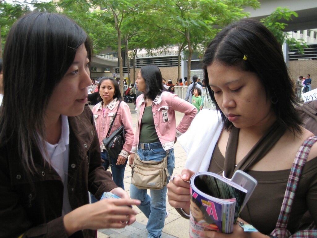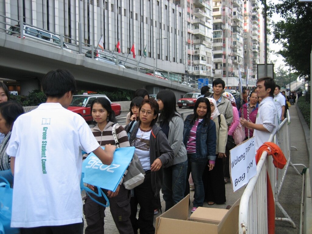 12月份的無膠袋日就快到了,將於12月5日舉辦。繼上月於中環舉行宣傳活動向全港女傭推廣無膠袋訊息,本會今日去到銅鑼灣維園繼續舉行宣傳活動,派發本會製造的無膠袋日磁石貼和環保袋,向她們推廣無膠袋訊息,提醒女傭買菜時少用膠袋。活動得到大部份女傭支持,表示會於下星期二自備購物袋響應無膠袋日,以後亦會少用膠袋,支持環保。