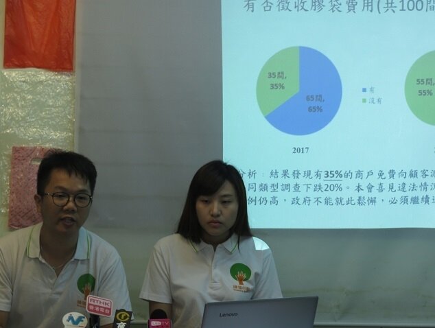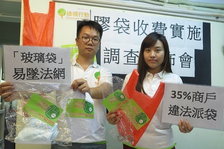 政府自2015年4月1日全面推行塑膠購物袋收費,至今已超過兩年。2016年夏天,綠領行動曾經派員到100個零售點購買非豁免收費物品,測試店員會否主動派發膠袋及收取至少$0.5的膠袋收費。