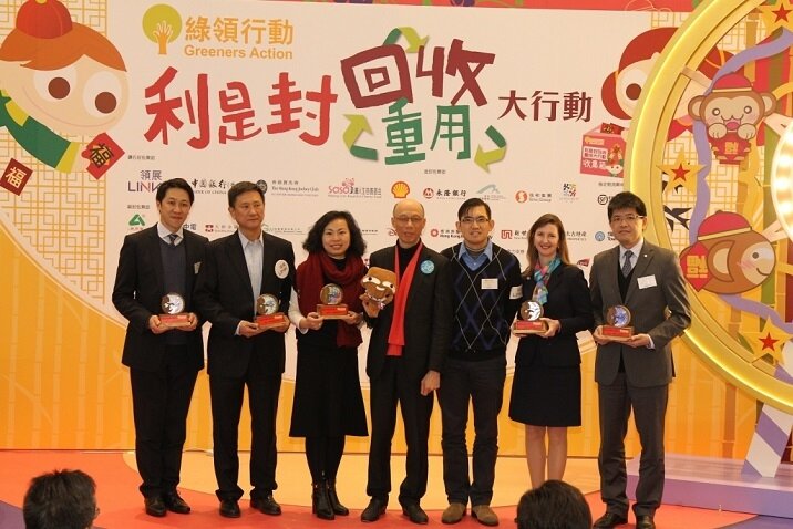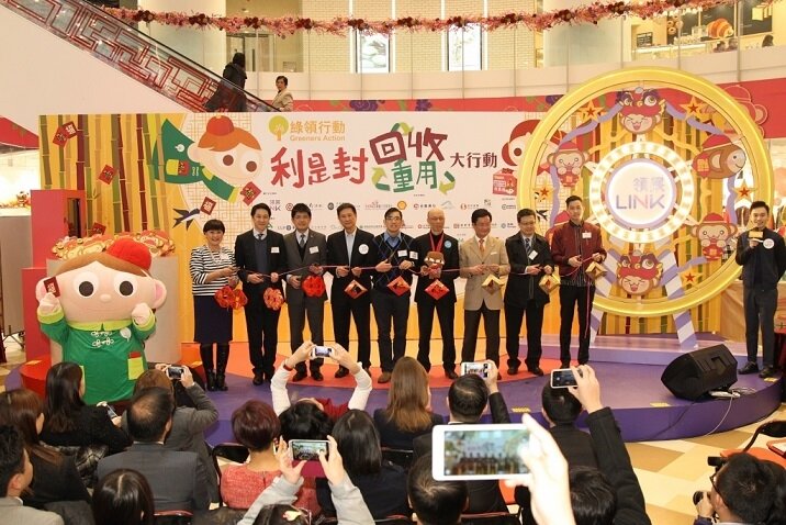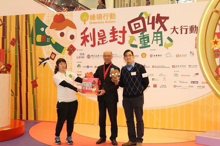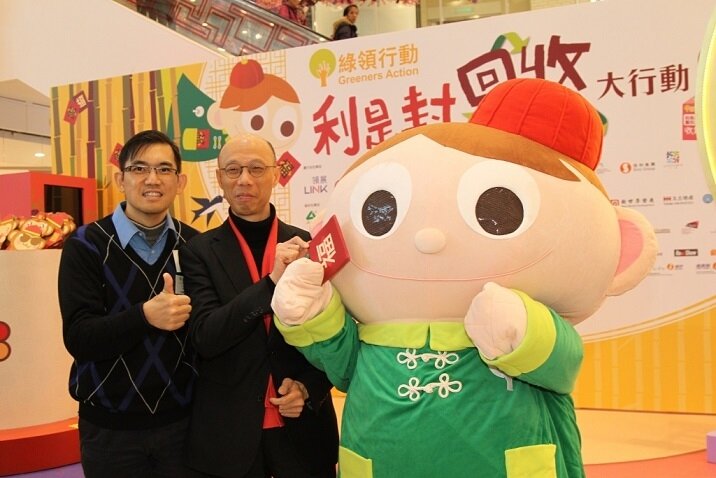 Greeners Action announced this year program information in today’s ceremony. 50 corporates and organizations have participated in the program. There are more than 650 recycling spots, which widely distributed in 100 shopping malls of Link Ltd., 60 HKJC off course betting branches, 60 branches of Bank of China so that citizens can participate easily. Starting from today to 4th March, red packets collection boxes will be placed in shopping malls, housing estates, banks and hotels all over Hong Kong. According to Angus Ho, the Executive Director of Greeners Action, more small sized corporates starts to contact them to get recycled red packets and they will send letters to the 18 District Councils to prevent them from printing new red packets and instead, use recycled red packets.