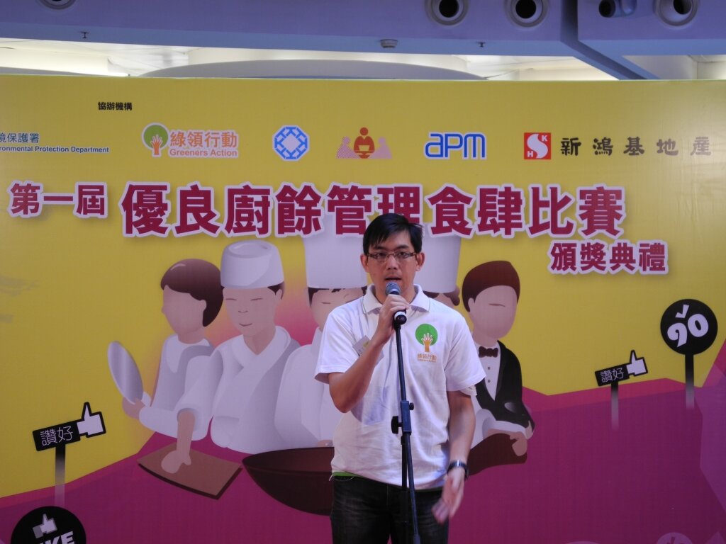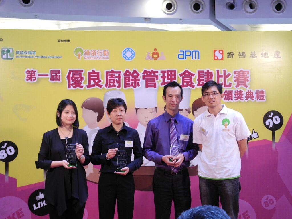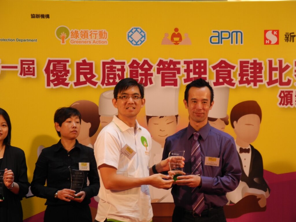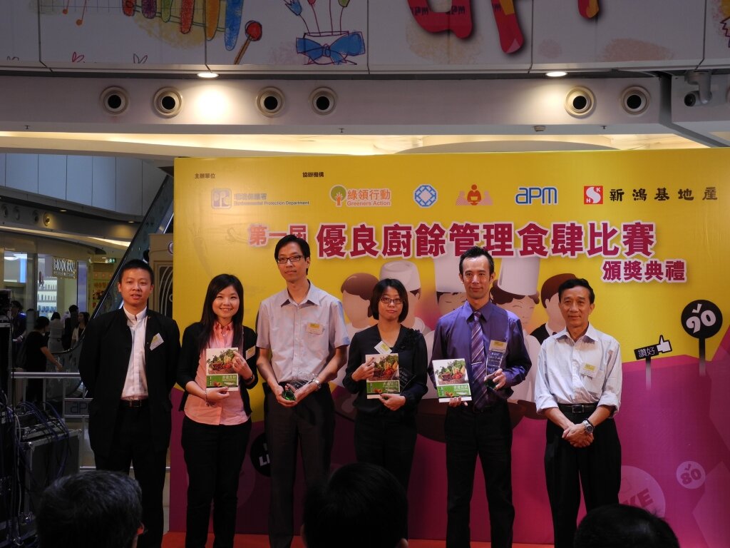 綠領行動聯同環保署、觀塘區議會及新鴻基地產自去年7月起一同推行首個與區議會合作的廚餘減量運動,當中的第一屆優良廚餘管理食肆比賽已於2011年12月至2012年3月成功進行,食肆透過實踐其建議措施以減少廚餘,並於今日(7月11日)於apm商場舉辦「第一屆優良廚餘管理食肆比賽」頒獎禮,公佈是次比賽冠、亞、季軍得獎食肆、「最高廚餘減量」餐廳,以及由觀塘區市民公開投票選出的「市民喜愛的環保餐廳」。