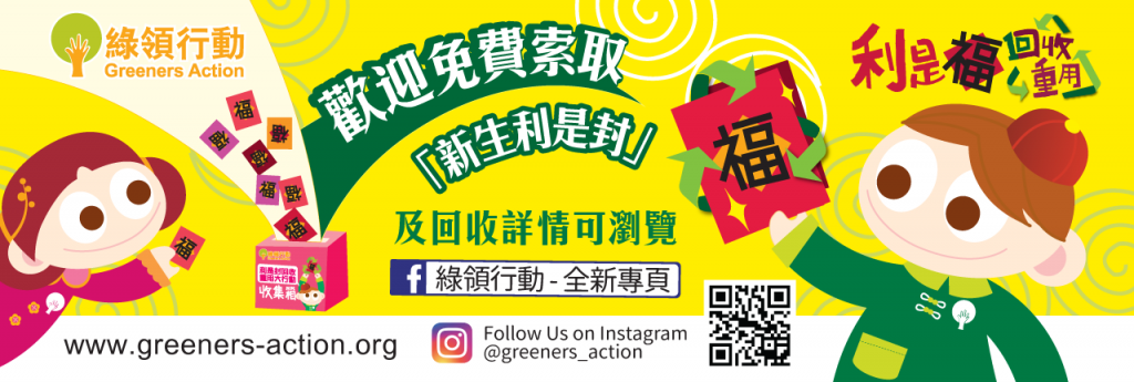 如有意參與利是封回收重用大行動,歡迎致電 3499 1780 或 電郵至laisee@greeners-action.org 與本會葉小姐或羅小姐聯絡!多謝各位支持本會工作。