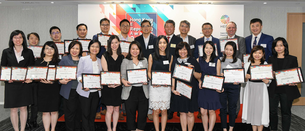 自2016年起,香港交易所要求所有上市公司都需要遵守《環境、社會及管治(ESG)報告指引》進行報告。為提高報告質素及透明度,本會與「本識顧問」合作,推動更多公司參加比賽,從中選出「最佳ESG 報告大獎」、「卓越GRI報告獎」、「卓越非上市公司ESG報告獎」、「卓越環境披露獎」及「創新領先報告獎」幾個大獎。