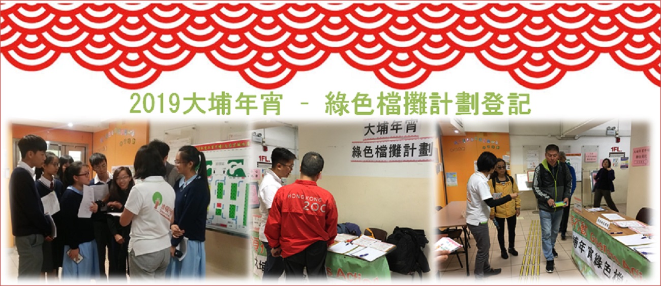 本會將與環境保護署及環境運動委員會合作,在2019年大埔年宵推行綠色年宵活動,鼓勵年宵檔攤進行多項環保措施,將資源回收及重用,落實惜物減廢的理念。綠色年宵宣傳和準備工作即將開始,我們需要市民積極參與!有興趣於年宵期間幫忙推行環保節慶的朋友,請聯絡本會項目主任詹小姐(電話:6750-0052)。謝謝。
