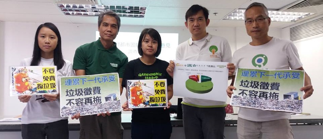 綠領行動、綠色力量等五個本地環保團體,於11月委託樹仁大學就市民對廢物收費立法取態進行獨立民意調查,發現85.5%的受訪者支持以「污者自付」原則處理垃圾,調查同時發現基層受訪者(月入$9,999或以下,公屋戶受訪者)分別有83.3%和86.4%支持實施垃圾徵費,以減少廢物量。
