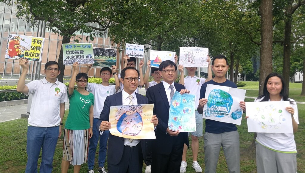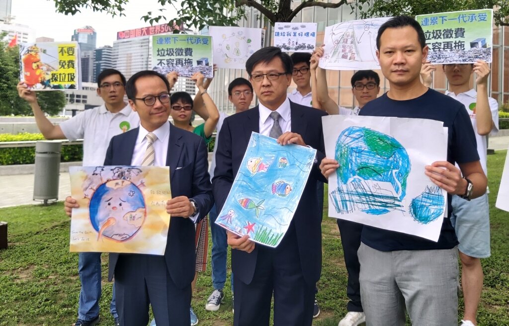 交小孩畫作予立法會議員 環保團體祈為垃圾徵費條例草案打氣