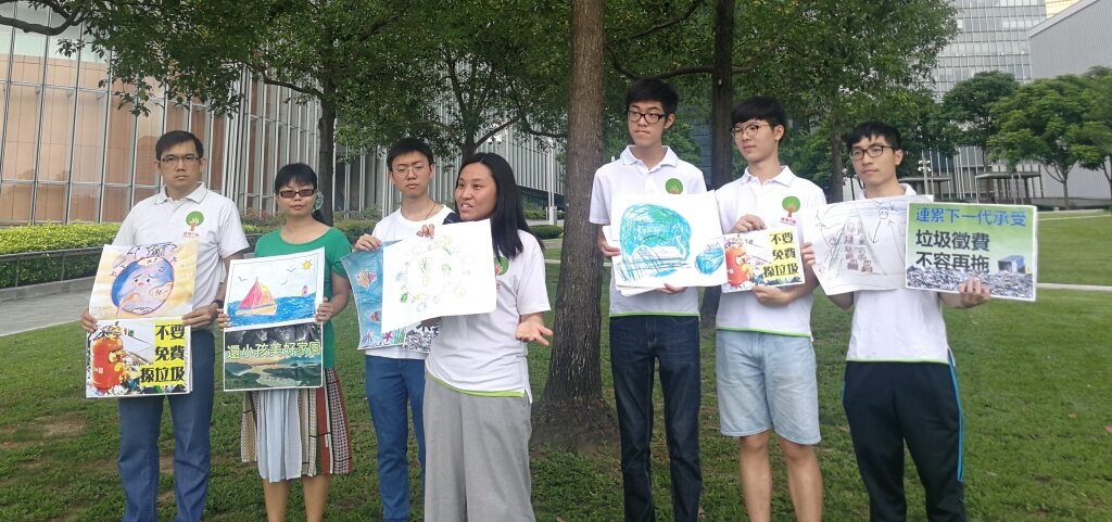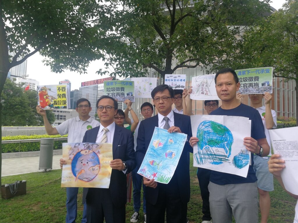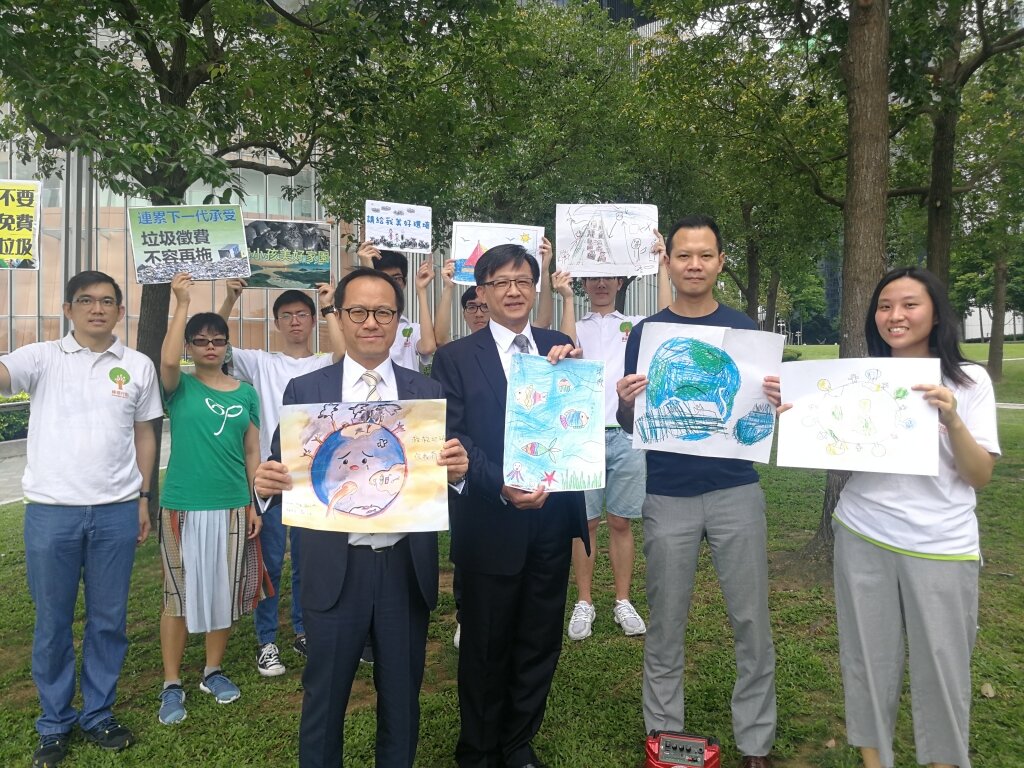 Regarding World Environment Day, the green group Greeners Action collaborating with the Friends of the Earth and Green Sense in Tamar Park, hoping the bill commitee amends and passes Municipal Solid Waste Charging bill as soon as possible. The green groups holding child's paintings and slogans written "For the next generation, the Municipal Solid Waste Charging cannot be delayed" and "Give our future generation a beautiful home", hoping Hong Kong can become a green city in the future and no longer facing a severe waste problem.