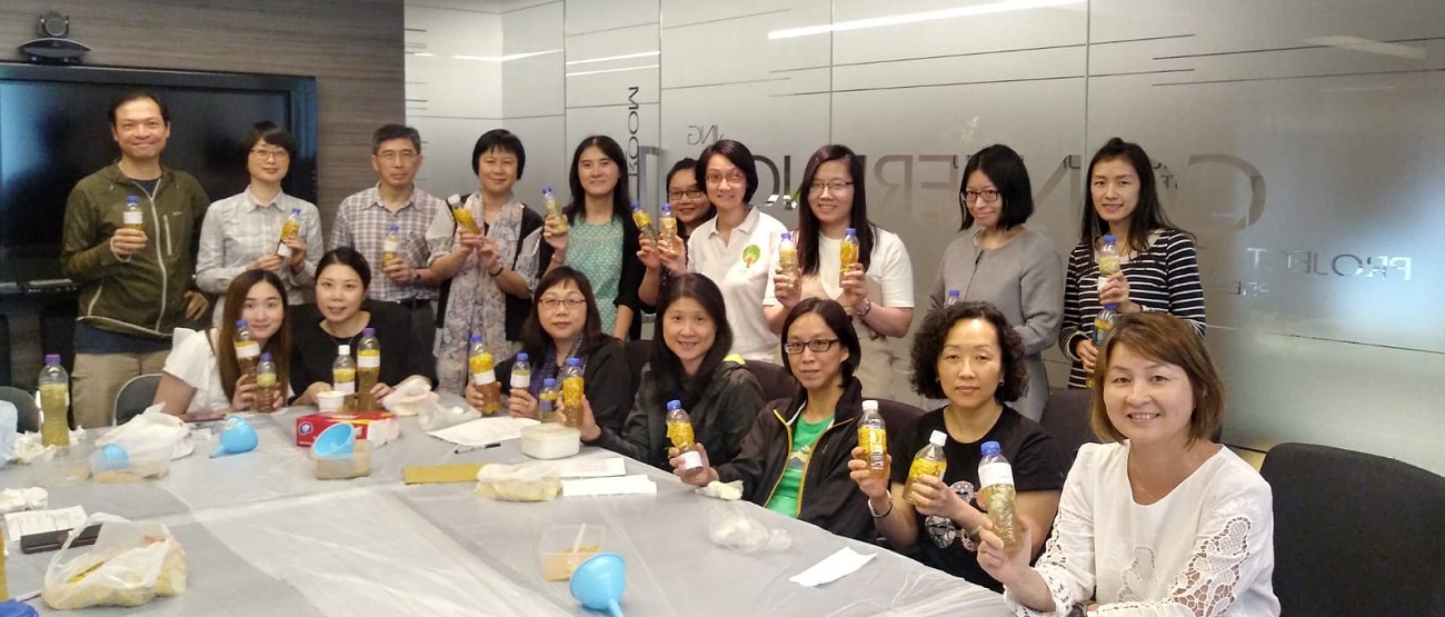 綠領行動於5至6月期間,為恒基兆業地產有限公司舉行了兩場環保酵素工作坊;與恒基的同事們分享環保酵素的製作及使用方法,既能用於家居清潔,又能消減廚餘。