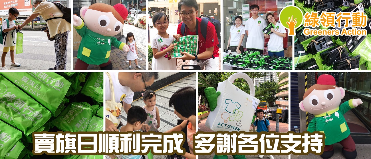 綠領行動於2019年7月27日(星期六)之賣旗活動已經順利完成 (籌款許可證編號﹕FD/R076/2019)。衷心感謝市民慷慨解囊,更加感激當日約480 位出席義工,大熱天扶老攜幼一起賣旗籌款。當日「利是仔」及「環保袋人」都有現身,與市民互動同歡。