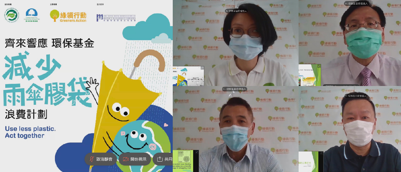 首場「環保基金之減少雨傘膠浪費計劃」業界分享及研討會,雖然受疫情影響改為網上分享會形式進行,但仍有超過100位來自各物業管理公司,大專院校等代表報名參加。會上嘉賓分享雨傘膠袋對環境的影響、政府對業界的支援、物業的成功例子分享以及分析不同除水機的特點,令參加者獲益良多。