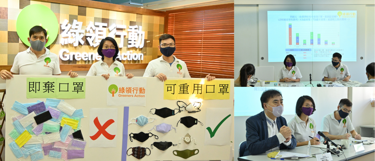 新冠肺炎疫情肆虐下,市民配戴口罩防疫成為指定動作。綠領行動於過去一個月就疫情下市民使用口罩的習慣進行網上問卷調查,超過90%受訪者表示慣常使用即棄口罩,估計疫情爆發至今,香港市民共消耗20億個即棄口罩 ,只有不足10%的人使用可重用口罩。