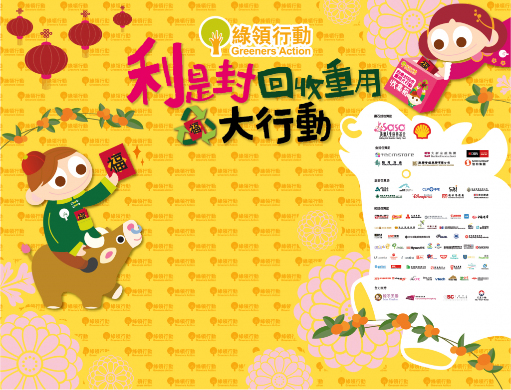 每逢農曆新年,傳統上都會去舊迎新,往往造成很多不必要的浪費。而其中一個習俗就是派利是,根據綠領行動早年調查所得,港人一年便產生 3.2 億個利是封,相等於伐樹 16,300 棵。有見及此,綠領行動連續12 年舉辦「利是封回收重用大行動」,希望由利是封等生活細節逐漸建立節日減廢的概念。今年活動得到 172間機構支持設立收集點,該會期望能回收超過 1,000 萬個利是封作重用。綠領行動宣佈於今日 (2 月 18 日)起至 3 月 3 日市民可到 172 間參與機構於全港超過 350 個公眾收集點回收利是封。