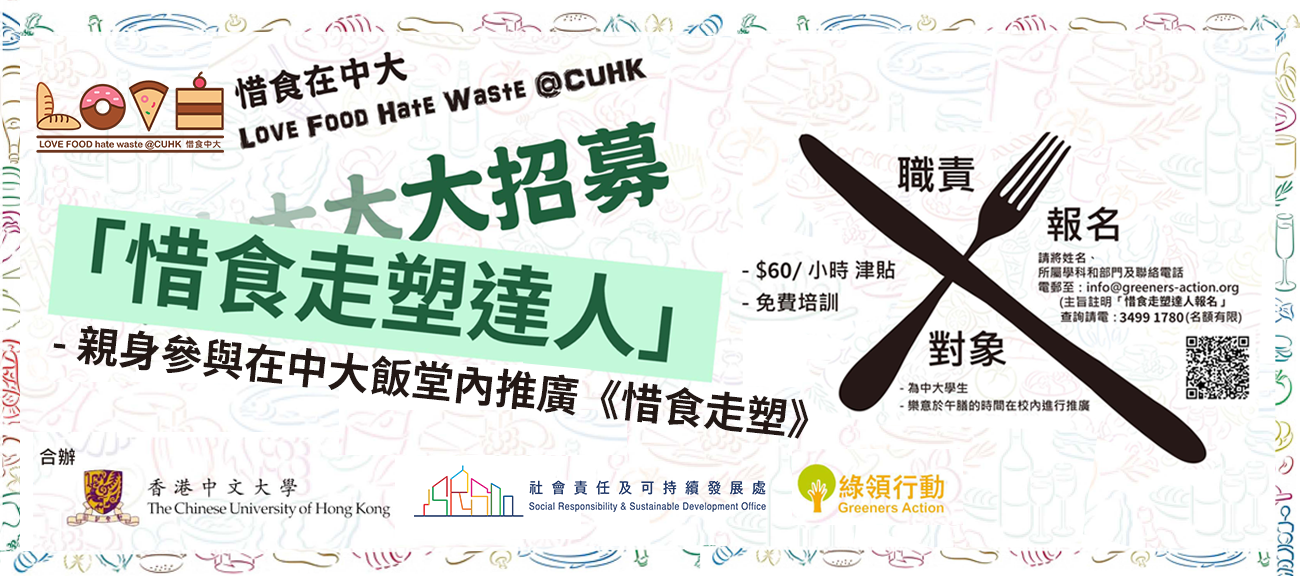 立即報名成為香港中文大學「惜食走塑達人」