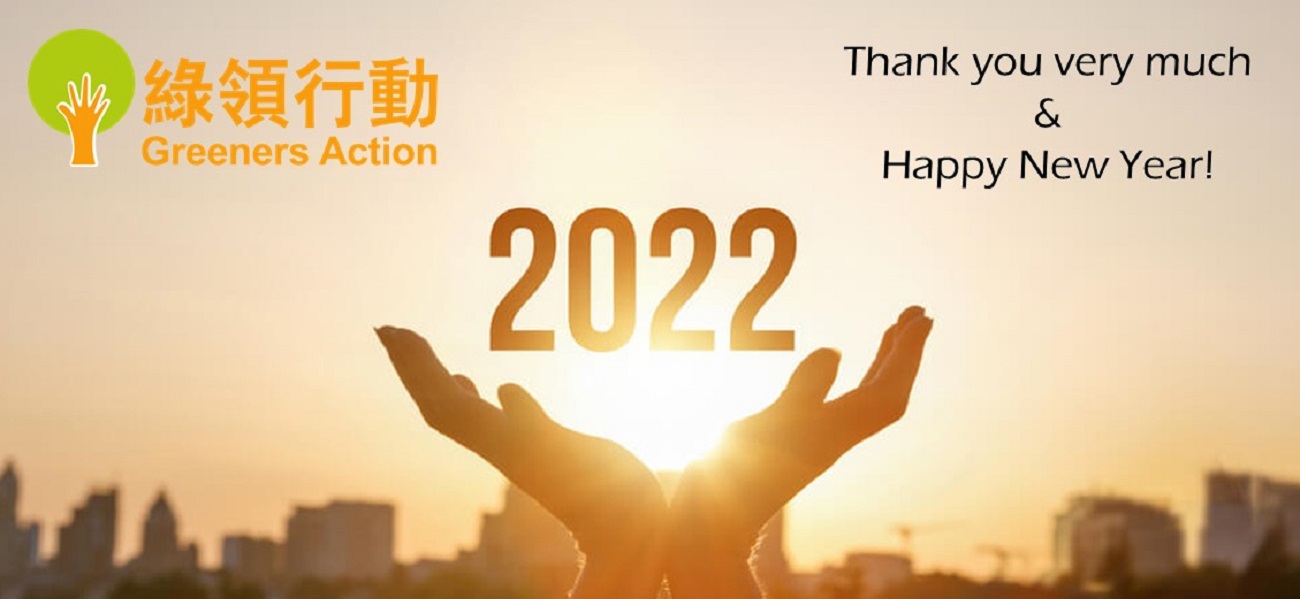 以上工作得以順利實踐,要衷心感謝各機構伙伴的全力支持,本會無言感激。期盼2022年疫情減退,市民生活回復正常,同時祝願各位新年快樂,生活安康,繼續與綠領行動攜手並肩推動本地環保發展。再次多謝大家!