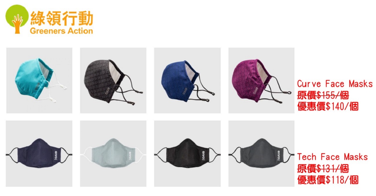 本會最近與TAL Apparel 簽署合作協議,凡於網上購買「Enro 可清洗重用口罩」使用優惠碼 "GREENERS" 即可享九折優惠,訂購滿三個更免運費。顧客享有折扣優惠的同時,公司亦會捐款支持綠領行動。