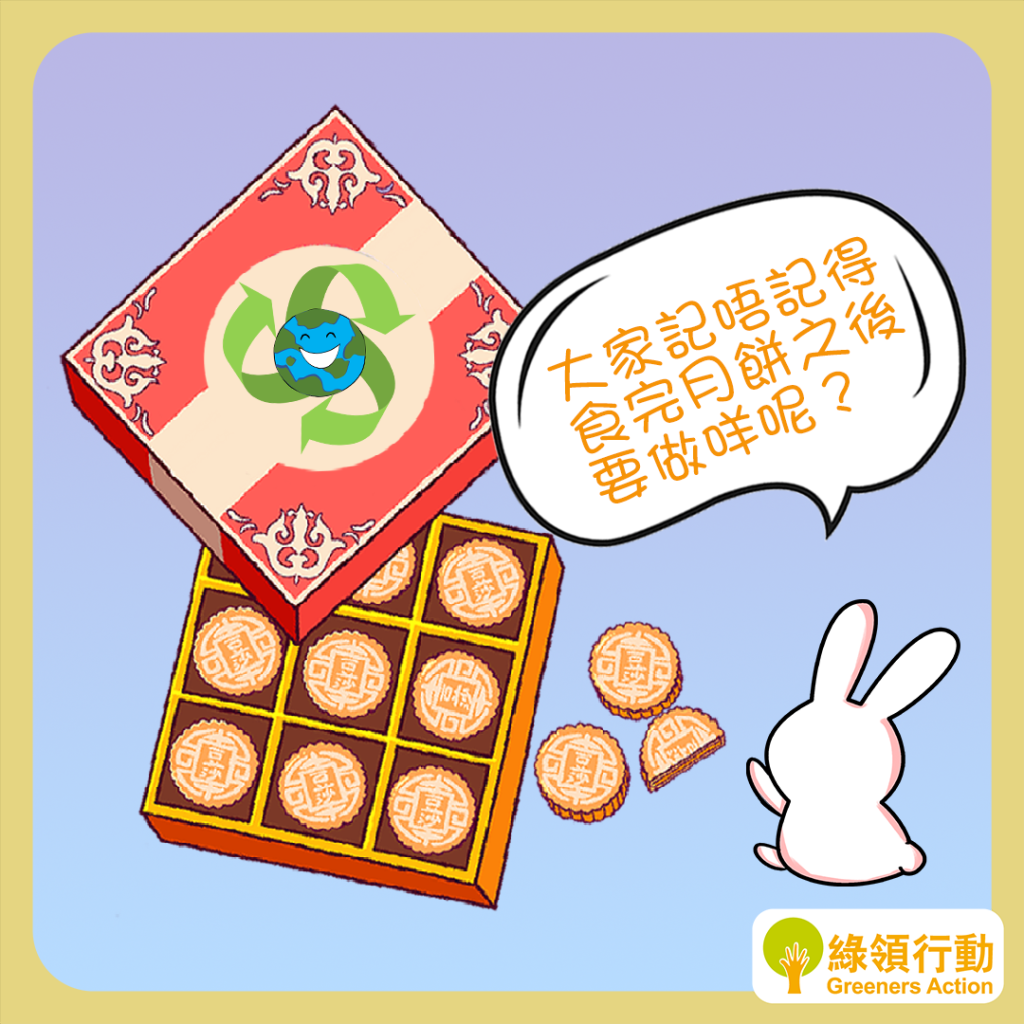 在廣大市民歡度中秋佳節的同時,各種的送禮及慶祝活動產生大量垃圾,為減少中秋節所產生的垃圾,使大家共度一個綠色節日,綠領行動今年繼續舉行「月餅盒回收大行動」,協助各機構妥善回收月餅盒,減少堆填區的壓力。