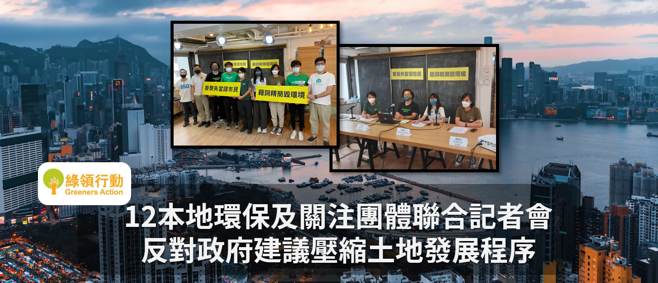 包括綠領行動在內12個環保及關注團體,於3月21日召開記者會,反對政府提出修例,壓縮城規條例的法定程序,包括將《城規條例》下兩輪收集申述及意見的步驟,合併成一輪、取消公眾根據第12A條提出改劃申請的權利等,將削弱公眾就土地發展表達意見的權利。團體代表在記者會上指出,政府房屋政策失誤,包括行政效率低、漠視棕地發展潛力等問題,才是造成土地和房屋供應進度緩慢的主要原因。